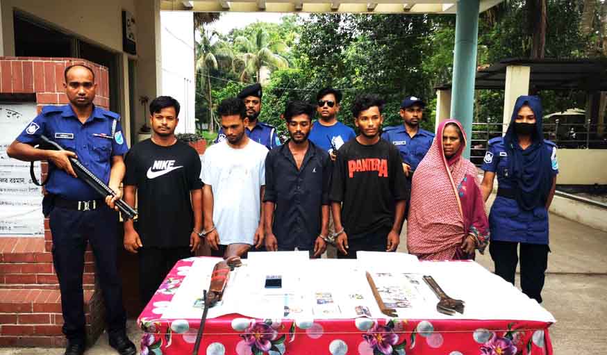 বৃহস্পতিবার সকালে নবাবগঞ্জ থানায় দোহার সার্কেলের সিনিয়র পুলিশ সুপার মো আশরাফুল আলম এক সংবাদ বিজ্ঞপ্তিতে এ তথ্য জানান। এ সময় তাদের কাছ থেকে ১টি ভিভো মোবাইল ফোন, ১ টি এয়ারগান, ১ টি সেলাই রেঞ্জ ও ১ টি শাবল উদ্ধার করা হয়।