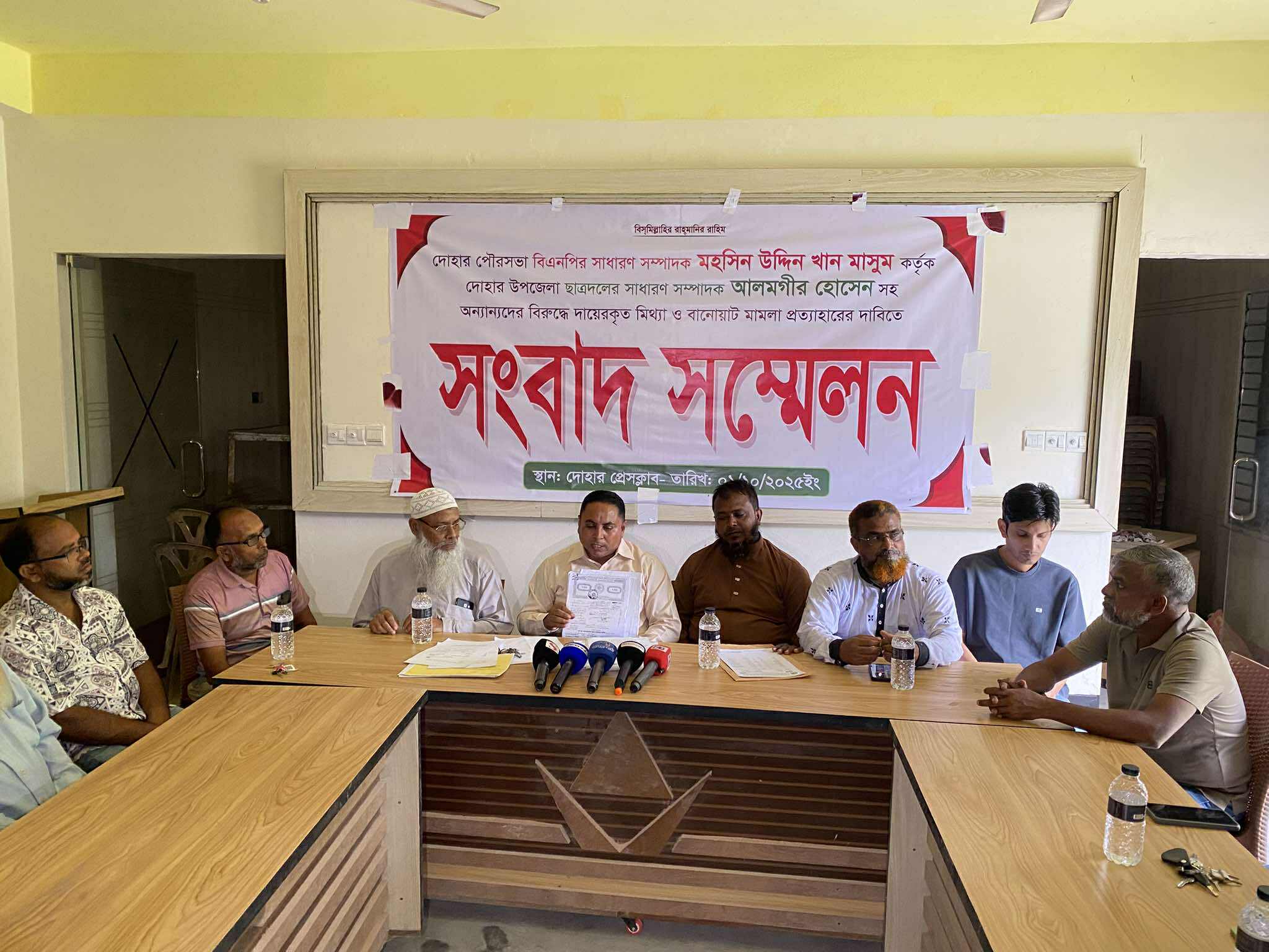 দোহারে ছাত্রদল নেতার বিরুদ্ধে মামলা প্রত্যাহারের দাবিতে সংবাদ সম্মেলন